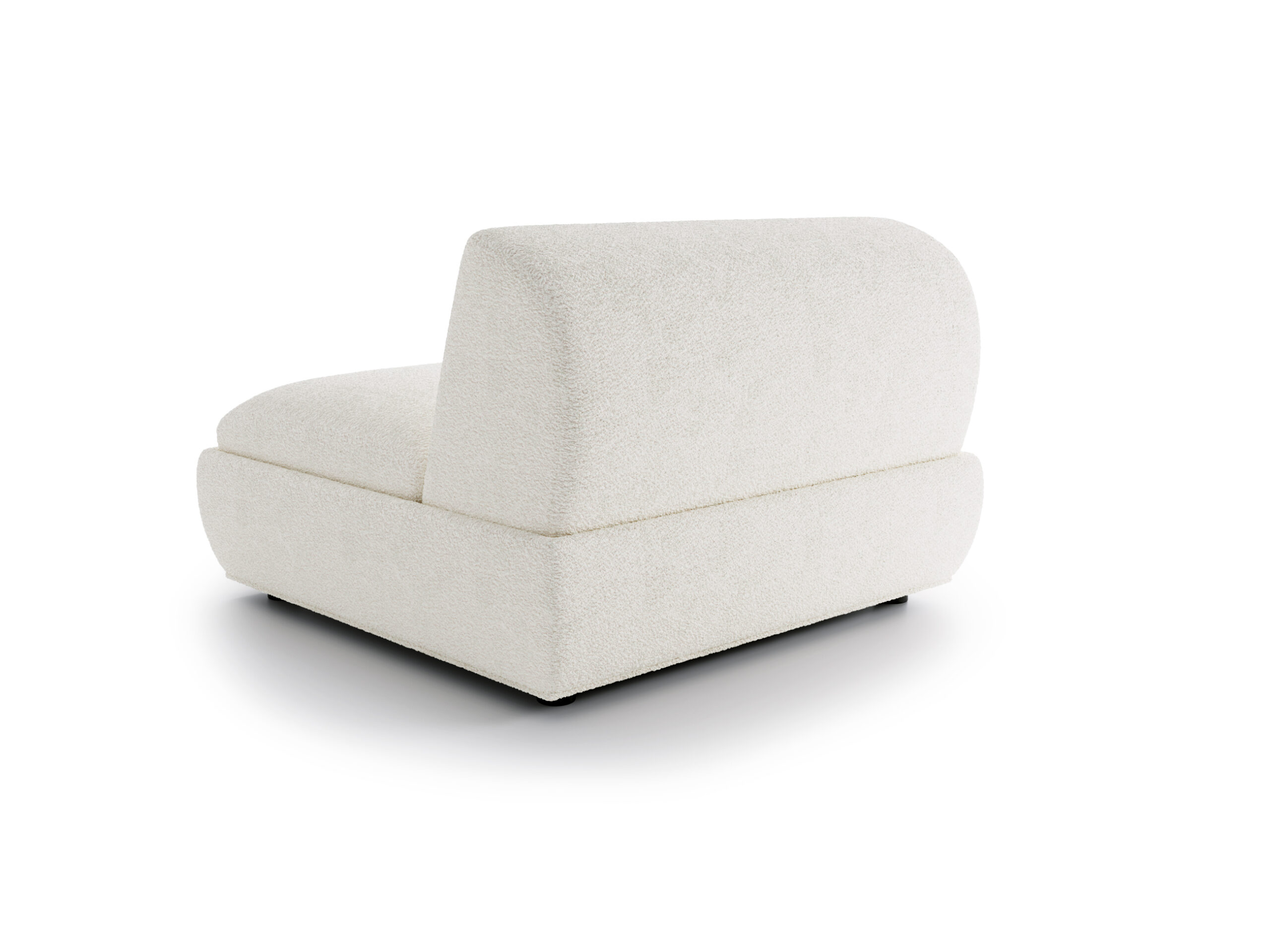 Fotel TERRA wyróżnia się nowoczesnym designem i zaokrąglonymi liniami, które wprowadzają do wnętrza elegancję. Opiera się na subtelnym drewnianym cokole, dodając całości lekkości i wyrafinowanego charakteru. Miękka tkanina i precyzyjne wykończenie podkreślają jego luksusowy styl.